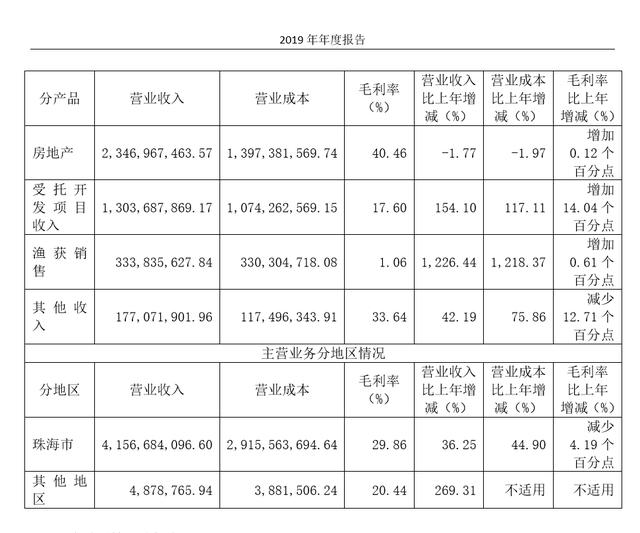 值得注意的是,2019年,格力地产在渔获销售业务上的营收为3.34亿元,毛利率仅1.06%,可见,渔获业务利润微薄。